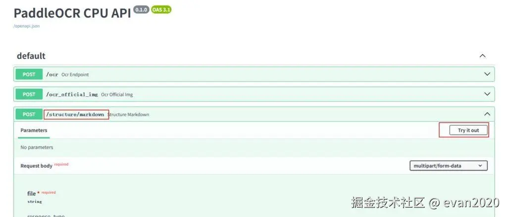 选择markdown接口,点击try it