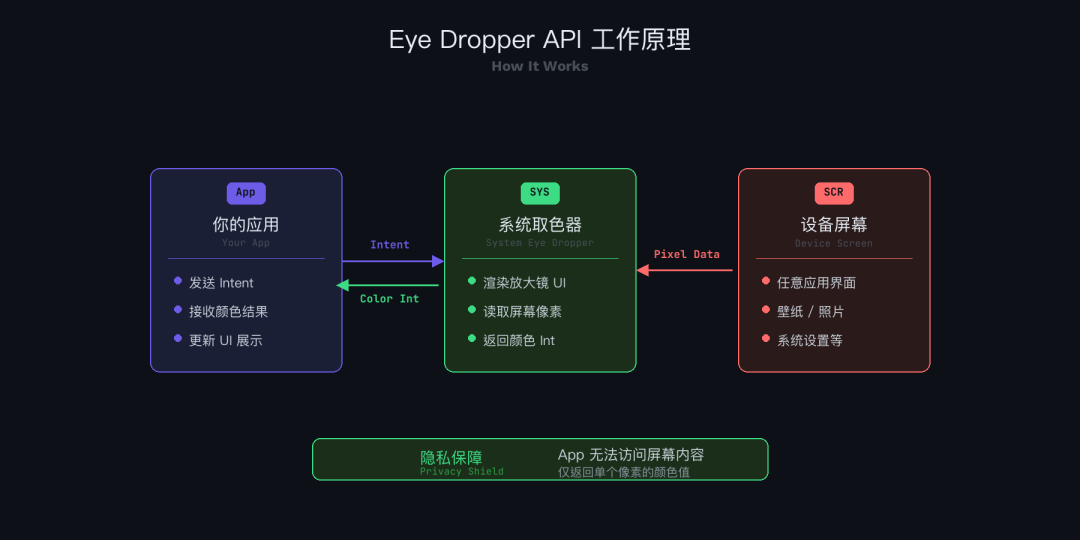 Eye Dropper API 的设计哲学是最小化数据暴露: