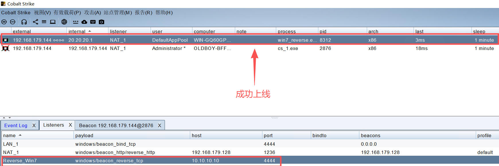 Step1 :基于Win2003建立一个转发上线 ,即通过win2003进行转发上线