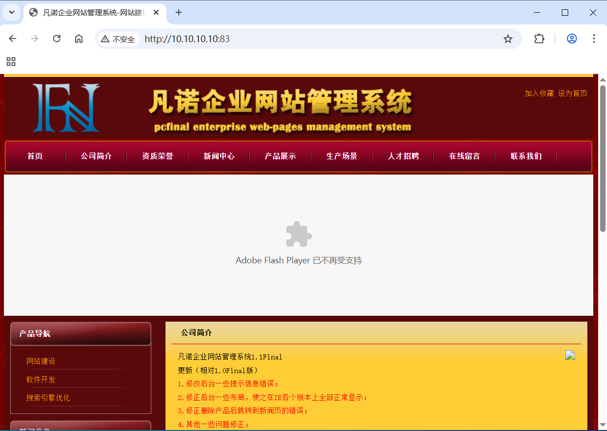 目标主机:10.10.10.10(外网机的第二个网卡,也是接入内网其他主机的网卡的IP地址),端口为83(此处的端口指向的是外网机中已经部署好的Web项目)。