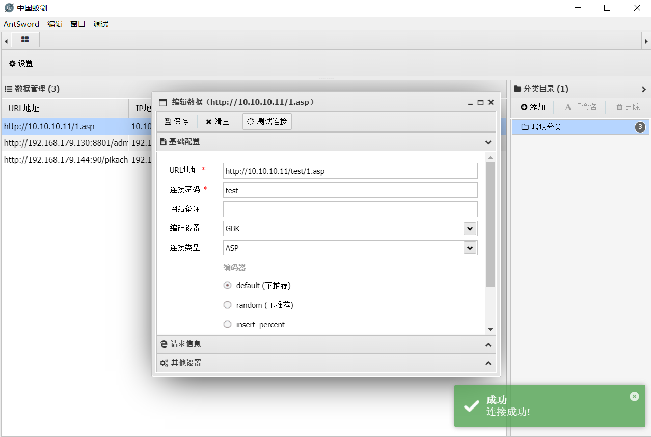 Step3 :利用webshell连接到目标主机(此处以蚁剑为例)