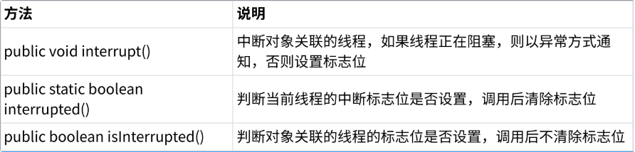 - thread.interrupted() ------ 表示主动去进行终止,相当于修改 boolean 变量的值为 true。