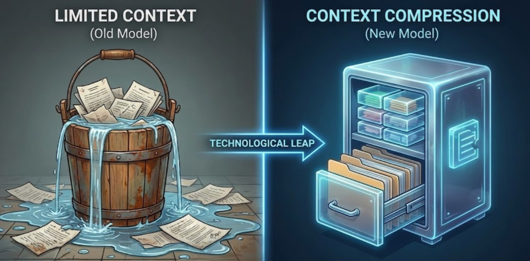 简单来说,以前的模型,上下文窗口是有限的,一旦塞满了,它就得把最早的记忆扔掉,或者直接罢工。