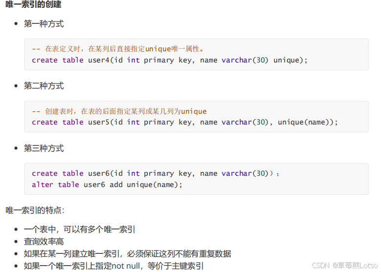 4.2 唯一索引(unique)