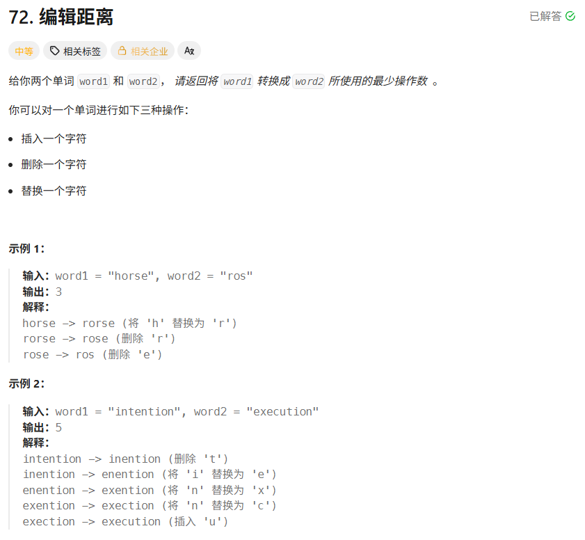 问题就变成:把前面的部分 word1[:i-1] 变成 word2[:j-1]