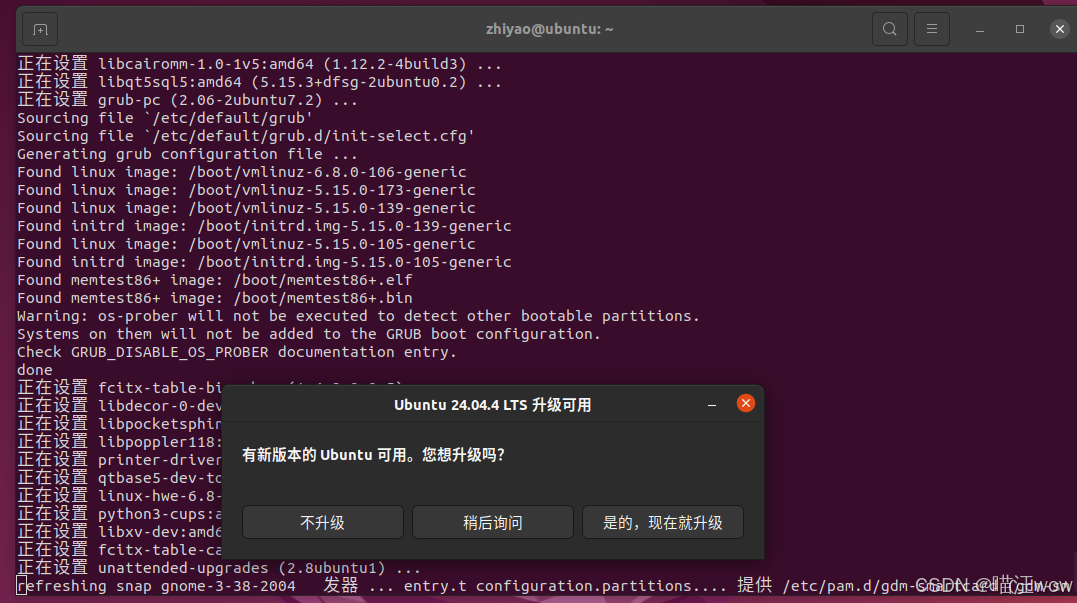 提示 5:桌面弹出"Ubuntu 24.04 LTS 升级可用"