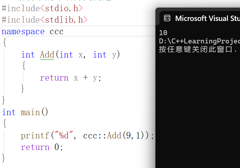 printf("%d", ccc::Add(9,1));