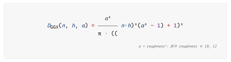 GGX 分布是目前工业界最广泛使用的 NDF,其"长尾"特性能产生真实的高光拖尾效果: