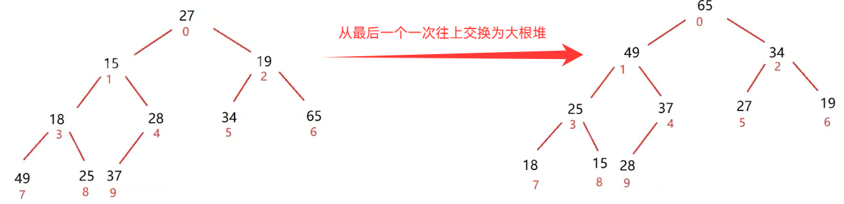 | 建堆 | 向下调整(siftDown) | 从最后一个非叶子节点往前,对非叶子节点执行 |