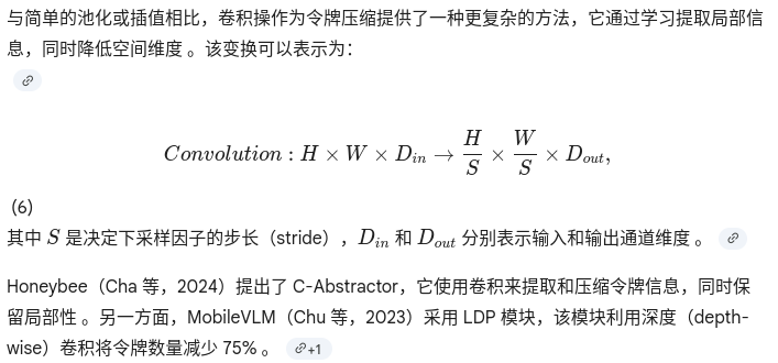 这些基于变换的、以图像为中心的压缩方法有效地利用了所有图像令牌,同时有意识地保留了 2D 特征的空间局部信息 。像素重排、池化和插值本质上是无参数的,因此不引入额外的权重开销,这是一个关键优势 。相比之下,卷积通过引入可训练的权重,学习到了更复杂的局部抽象 。
