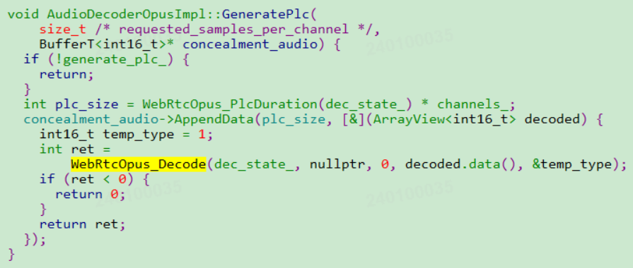 只有WebRTC使用opus编解码的时候,才会调用opus的decode,进而调用silk的plc
