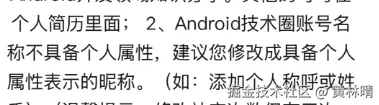 平台给出的反馈,说"Android技术圈"这个名字"没有个人属性",不能认证。