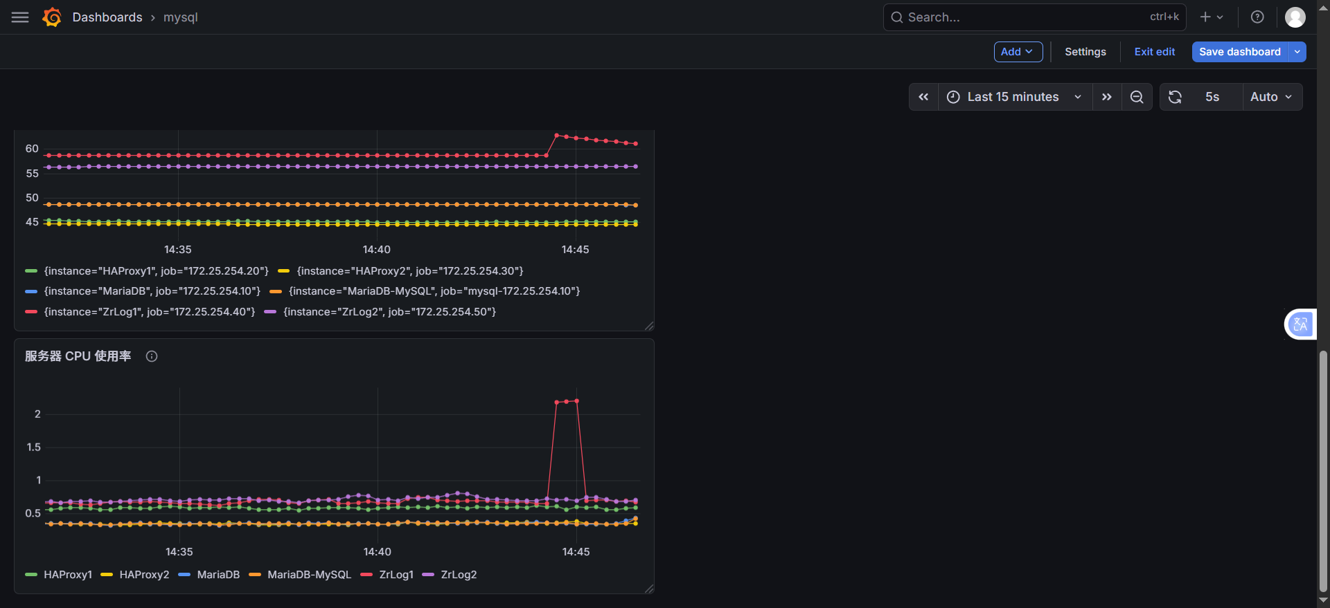 Panel options→Title,把New panel改成服务器CPU使用率,保存后看板更清晰