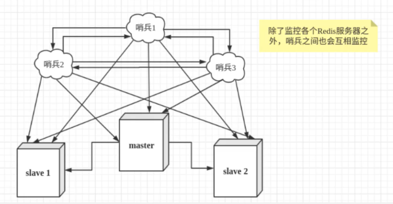 为了避免单哨兵故障,生产环境通常采用 "多哨兵模式",哨兵之间互相监控,提升集群稳定性。