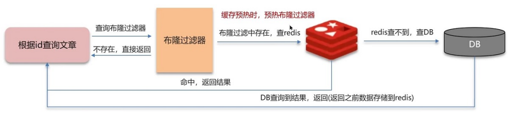- 原理:提前将所有合法的 key 存入布隆过滤器(一个大型 bitmap),请求先经过过滤器,不存在的 key 直接被拒绝,不进入缓存和数据库;