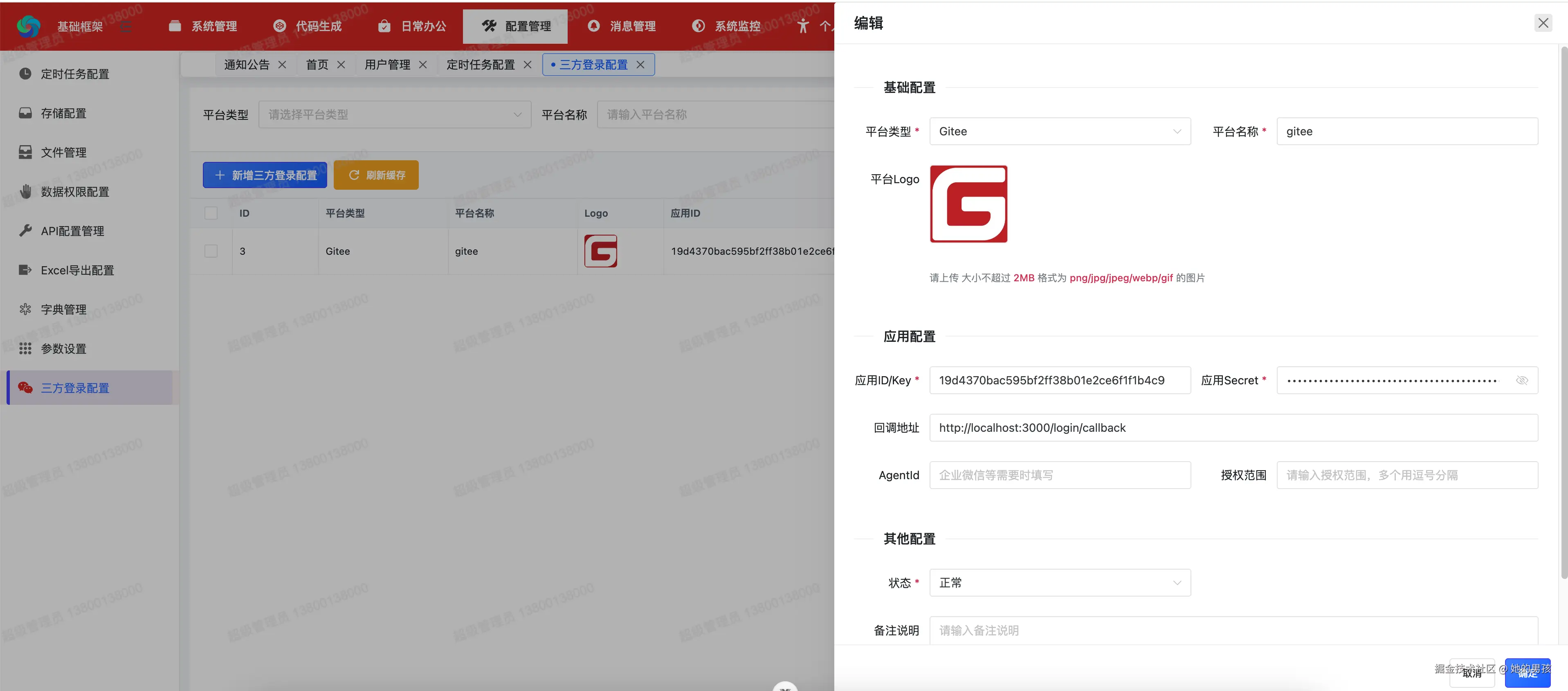 在系统管理中新增了「第三方登录配置」页面,你可以: