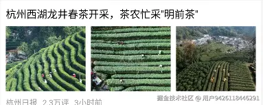 "杭州西湖龙井春茶开采,茶农忙采"明前茶"",