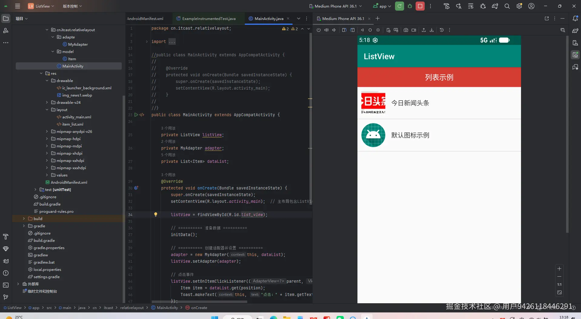 ListView是Android中最基础的列表控件,用于垂直展示一系列数据,支持滚动,适合数据量适中、布局简单的列表场景(如简单的文字列表、基础图文列表)。其核心是"适配器(Adapter)",负责将数据与布局绑定,实现数据的动态展示。