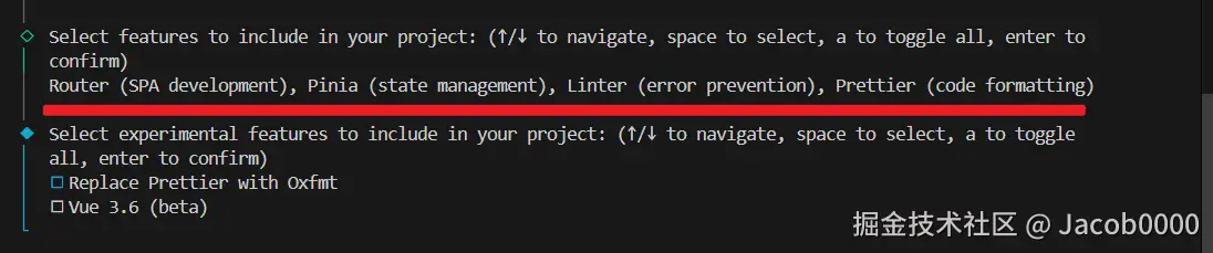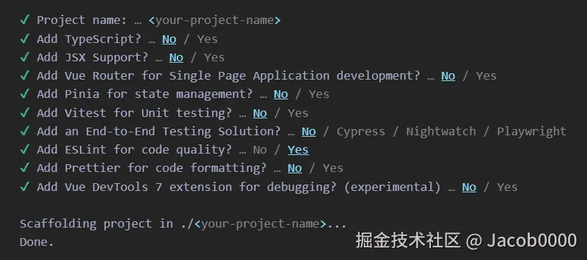 cmd# 架构师写在公司自动化脚本里的命令,瞬间生成标准项目 npm create vue@latest my-company-project -- --ts --router --pinia --eslint --prettier