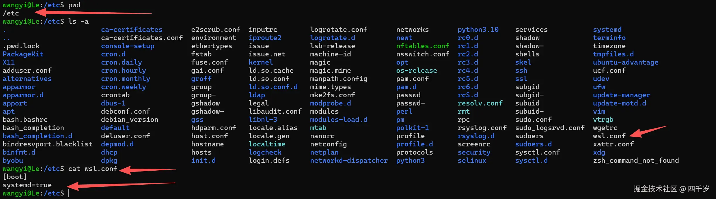使用cat命令,查看wsl.conf是否写入成功。