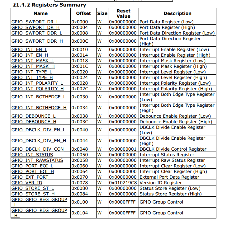 打开RockChip官方文档Rockchip_RK3576_TRM_Part1_V1.2_20240624.pdf,Chapter 21 GPIO章节,第一个就是寄存器的地址: