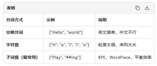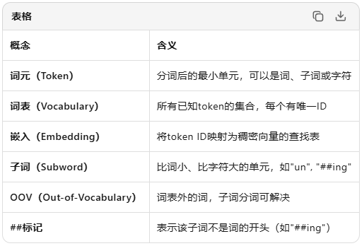 原始文本 → 分词(Tokenization) → 词元(Token) → 词汇表(Vocabulary)