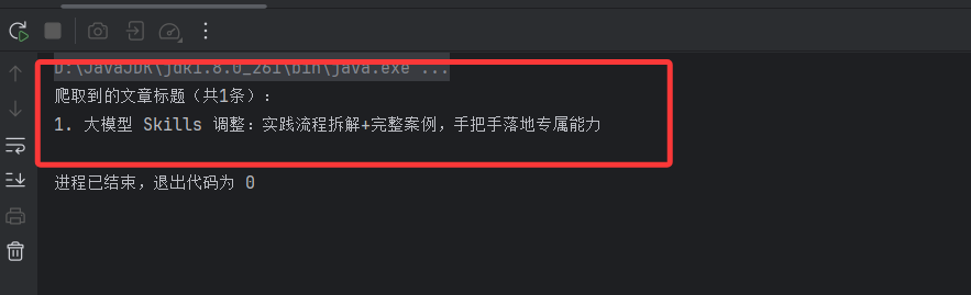 System.out.println("爬取到的文章标题(共" + titles.size() + "条):");