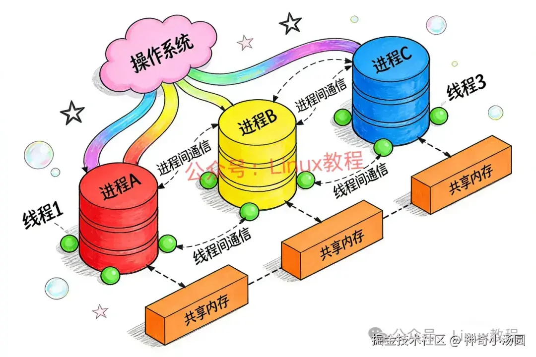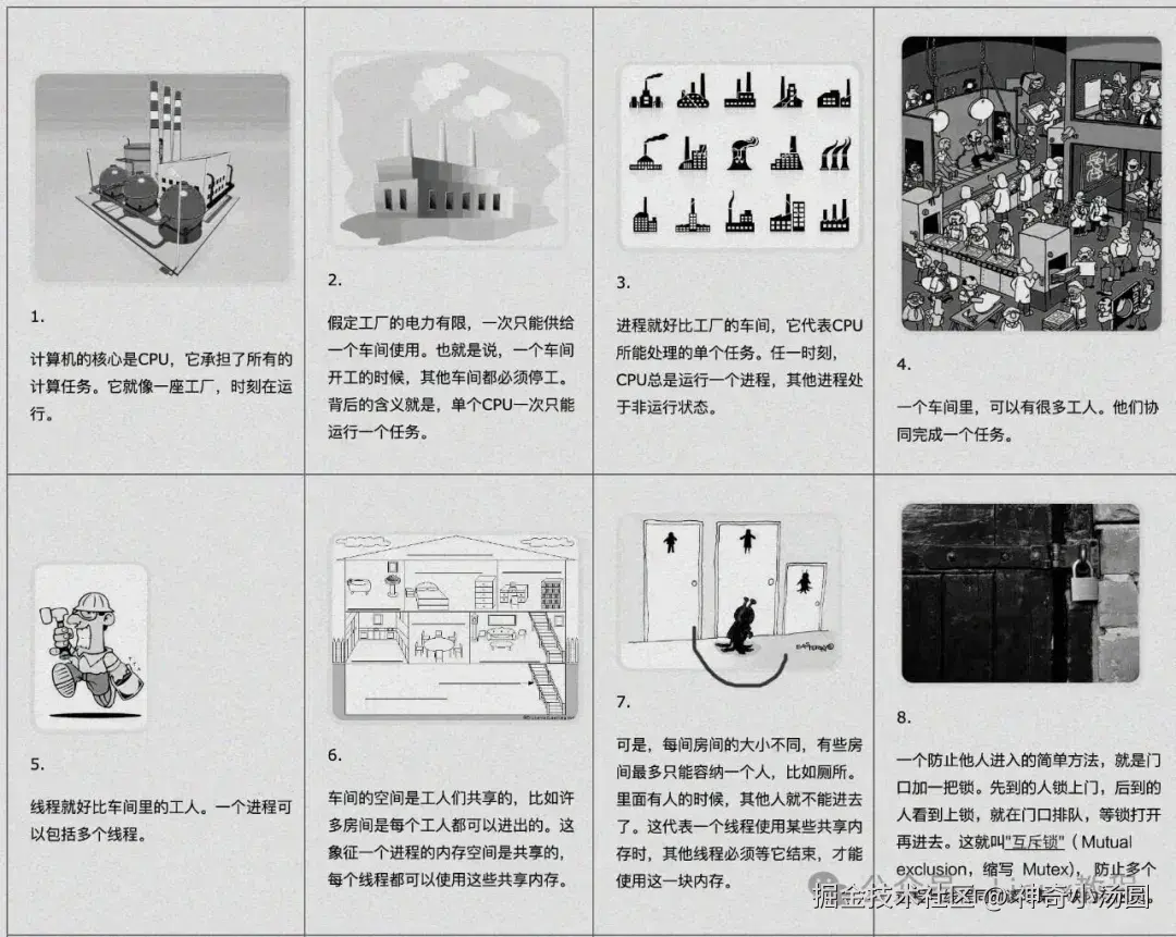 如果把操作系统比作一座大型工厂,进程就是工厂里独立的生产车间 ,而线程则是车间里各司其职的工人。带着这个比喻往下看,很多抽象概念你会瞬间清晰。