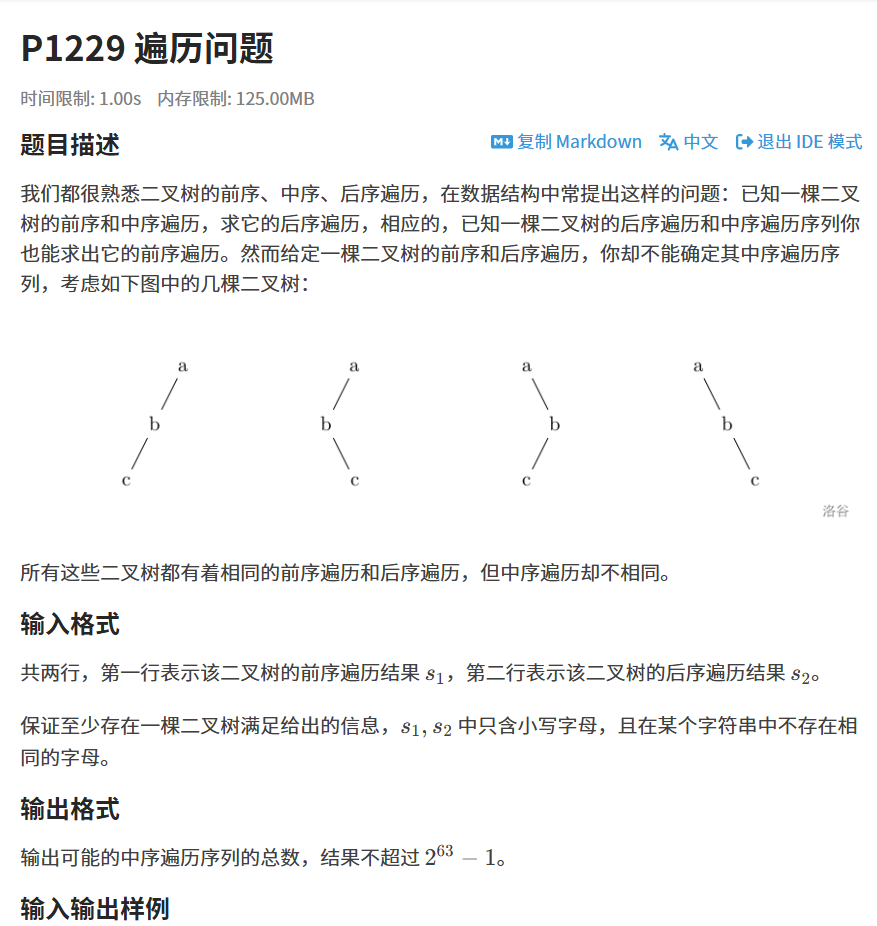 给定前序和后序遍历,这棵二叉树有多少种可能结构?