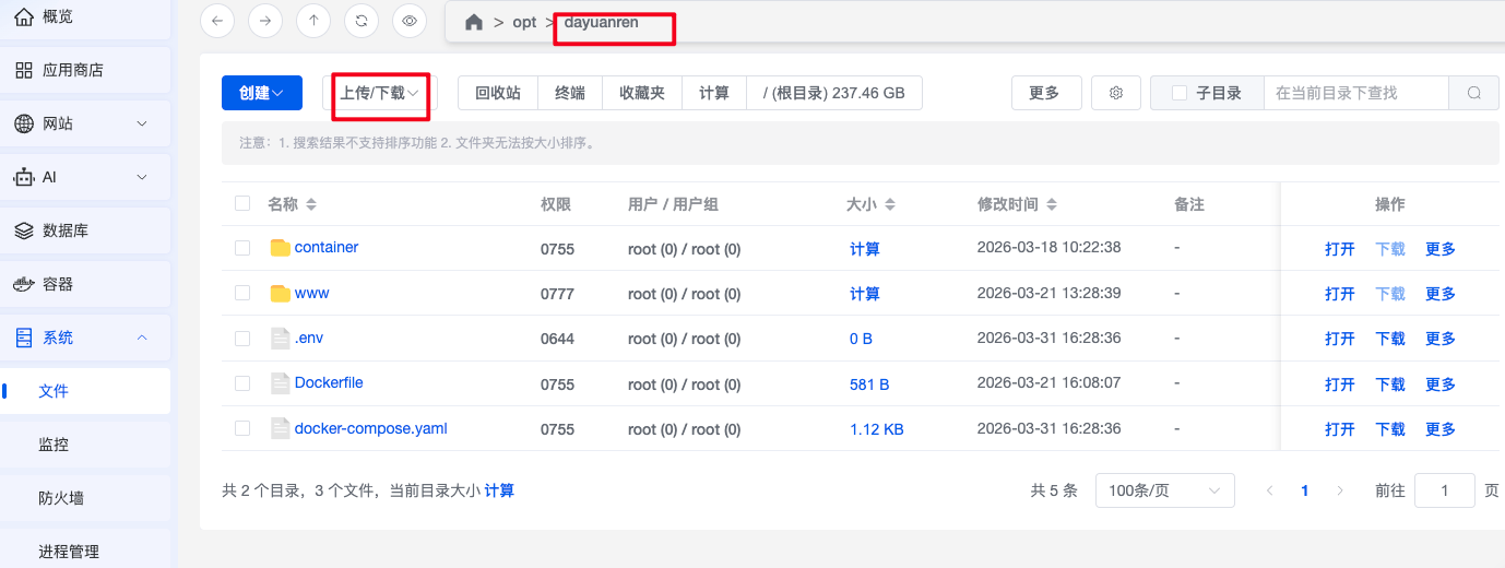 1.登录到1panel运维面板,找到左侧系统菜单栏中的系统按钮,然后点击文件。