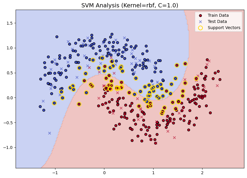 def run_svm_analysis(X_train, X_test, y_train, y_test, kernel='rbf', C=1.0, gamma=0.7):