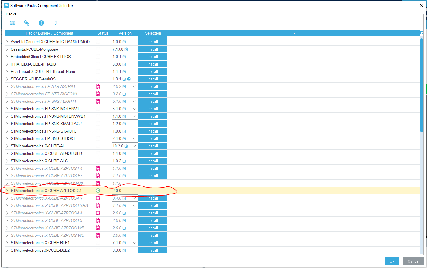 在这里选择【x-CUBE-AZRTOS-G4】来install.