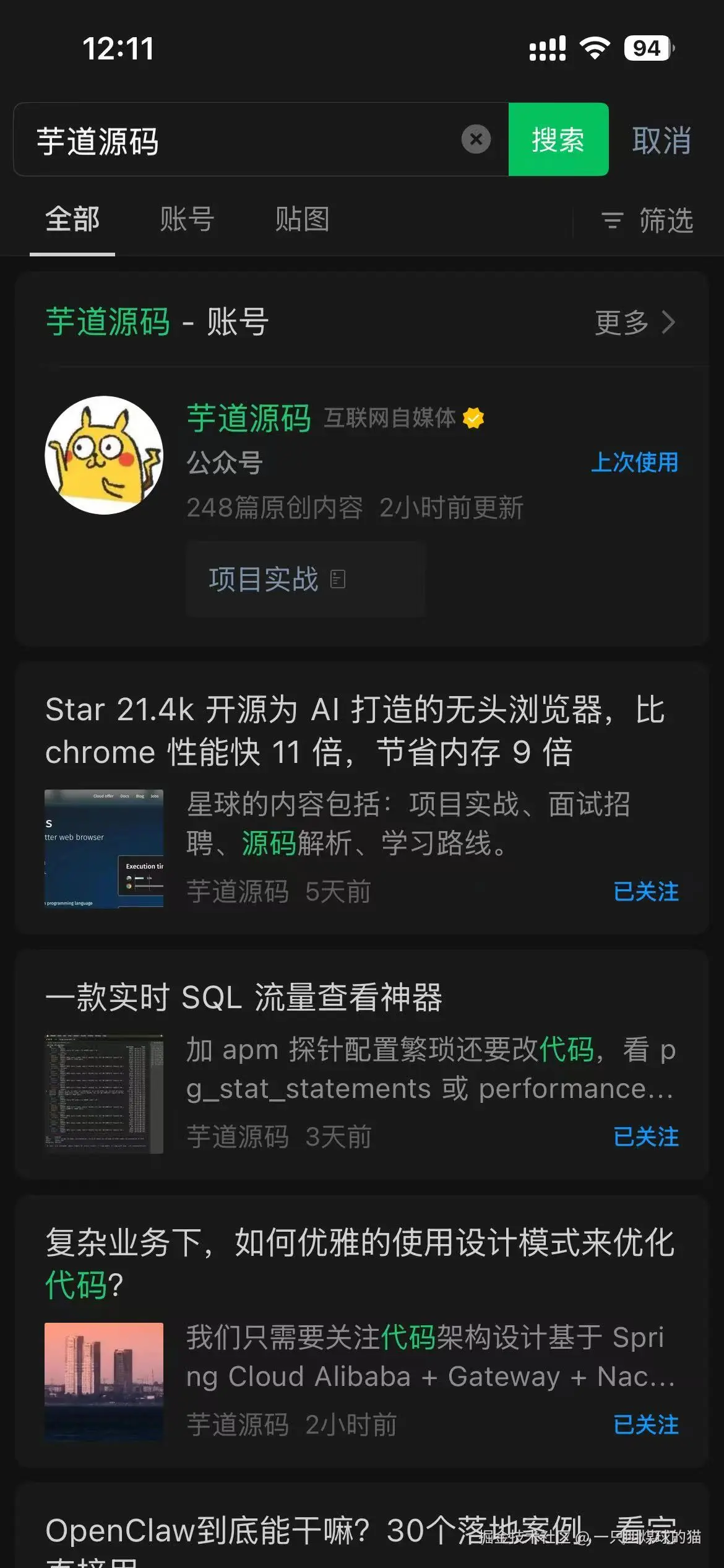 有个叫 「芋道源码」 的公众号,我关注了很久,相信不少人也关注了这个号。