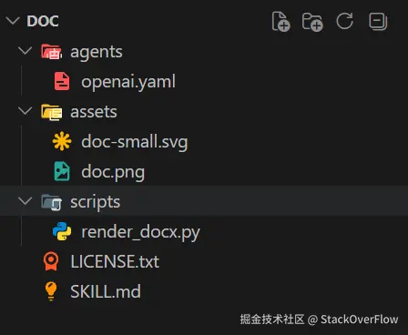 上图展示的名称为doc的Skill中SKILL.md大致如下: