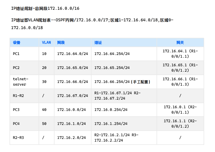 ip route-static 172.16.0.0 255.255.128.0 172.16.129.1 # 汇总OSPF网段