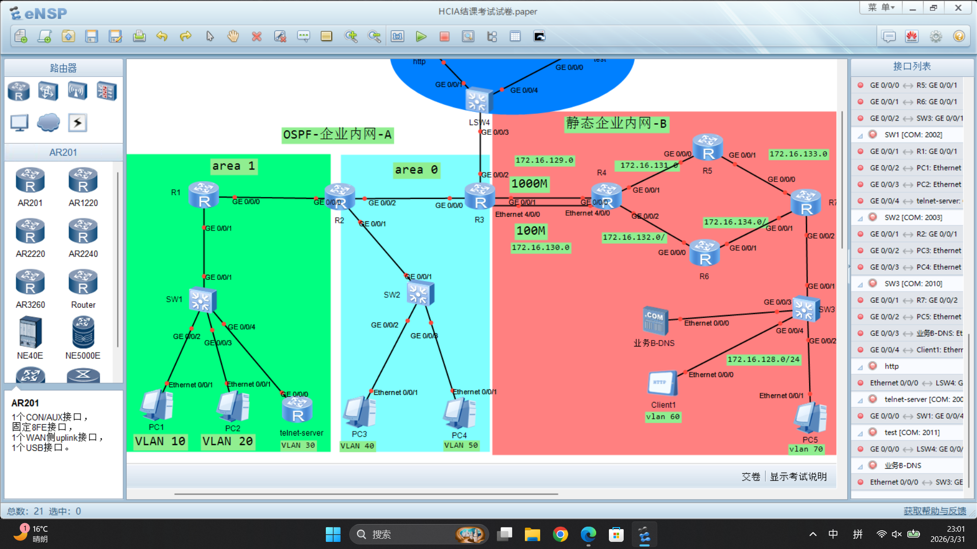 9.所有设备严格按照拓扑图标识进行配置,注意大小写。