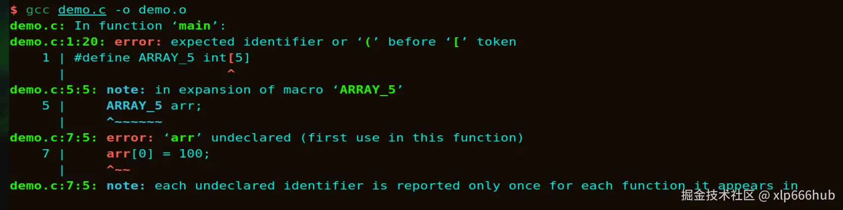 为什么报错是这样呢?归根结底还是预处理器的无脑替换,替换之后第 5 行变成了:int[5] arr;