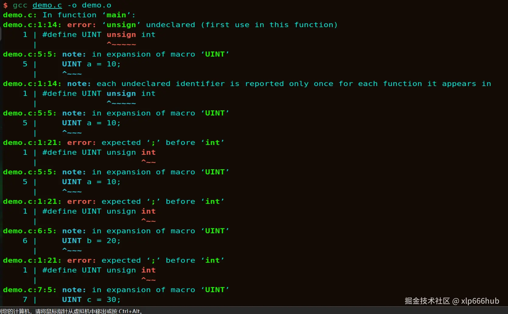 如下代码,加入我们把 unsigned 误写成 unsign :