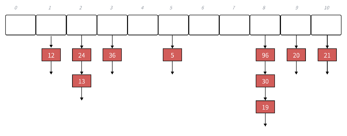 }//while循环结束说明第i位置的链表结点已经全部挪走了,需要置空