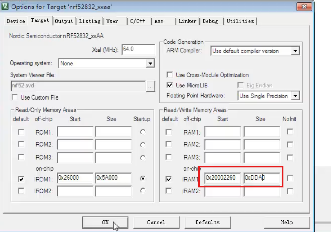 你的应用程序当前配置的 RAM 起始地址是