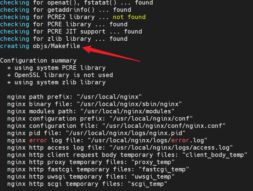 生成了 objs/Makefile,配置过程是成功的,其他不用管。