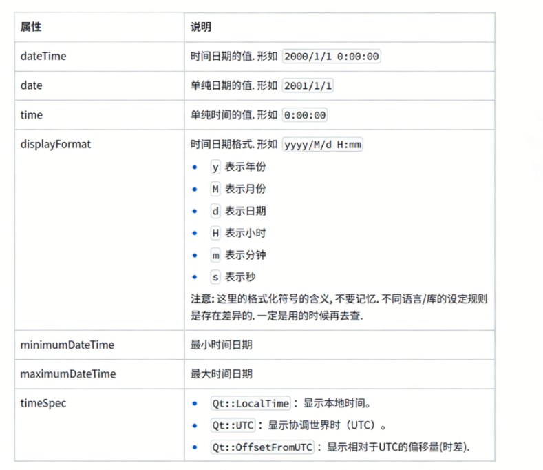 这几个控件十分的相似我们以QDateTimeEdit为例进行介绍