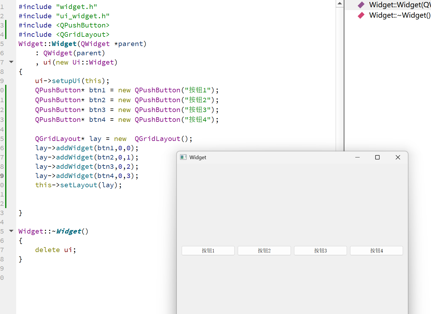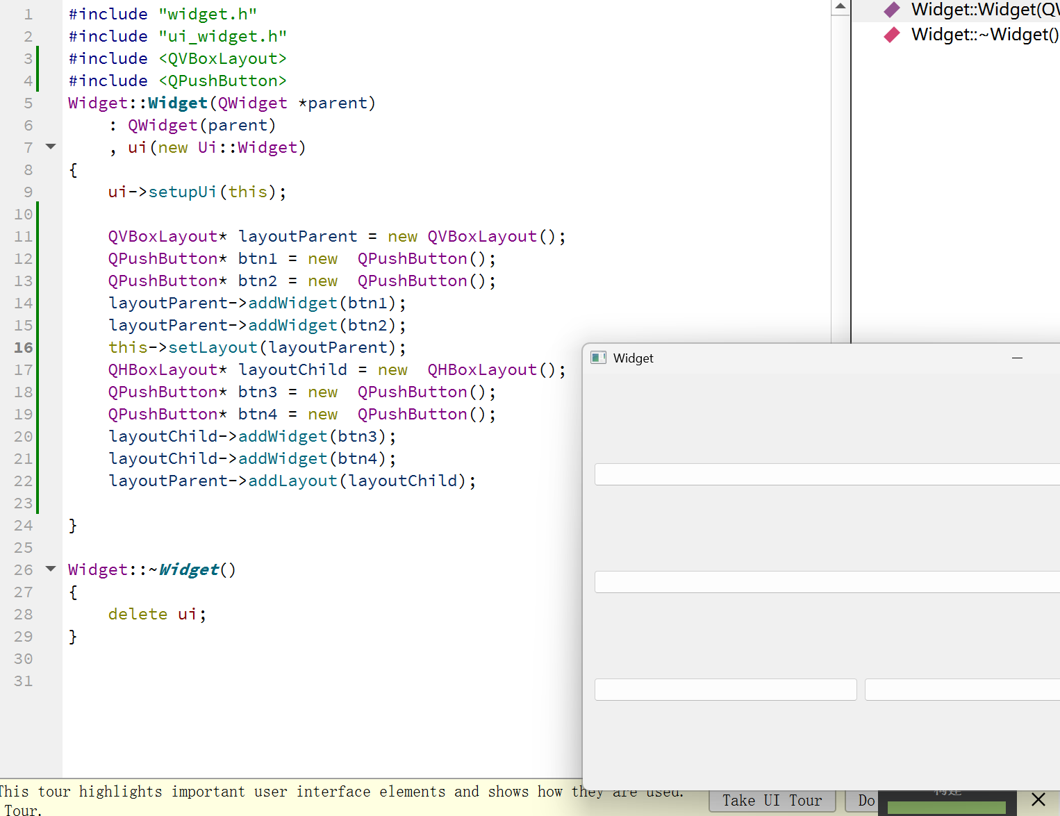 代码示例:使用QHBoxLayoutg管理控件