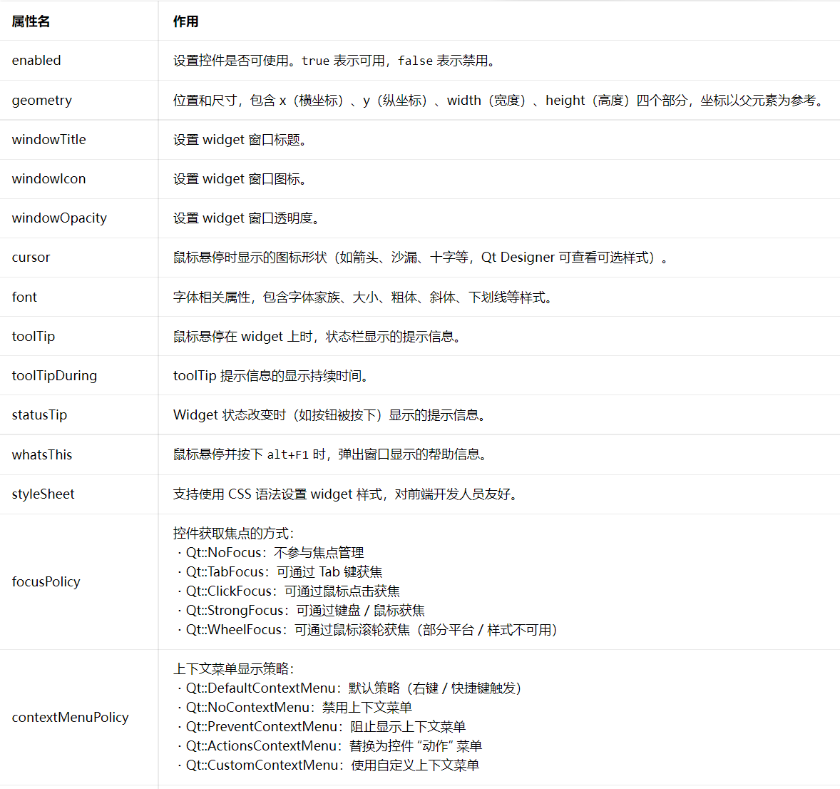 二、QWidget核心属性