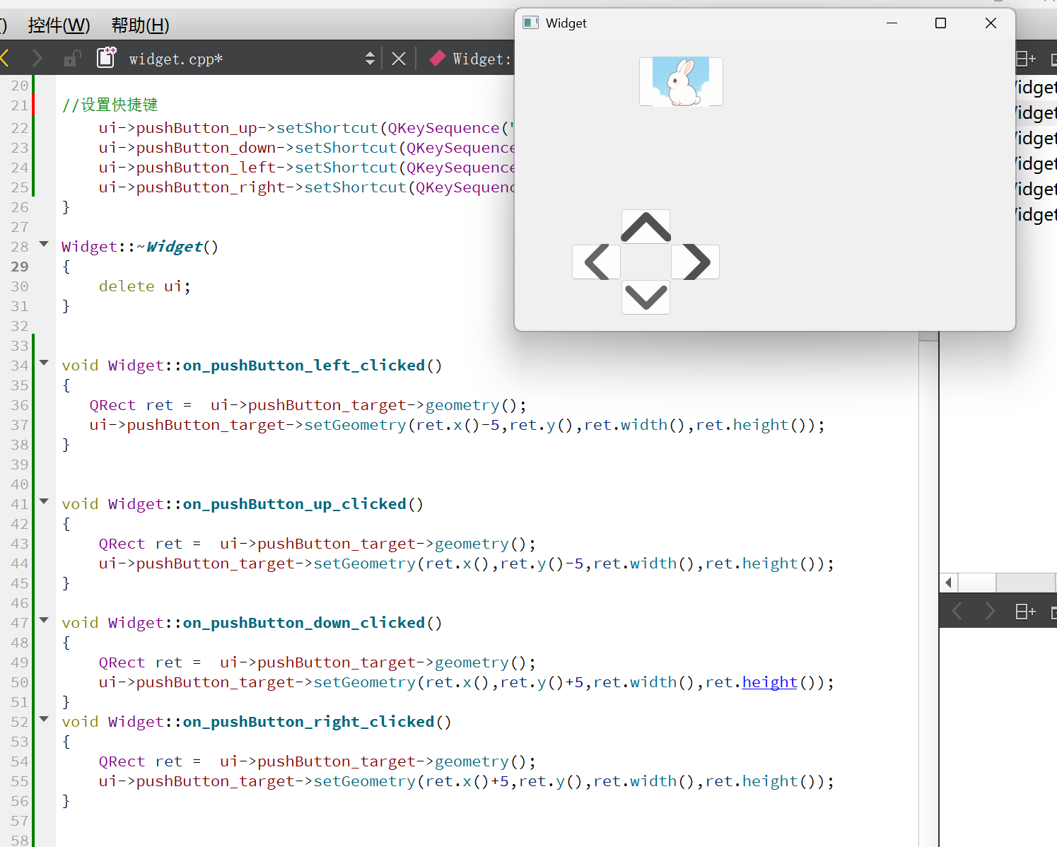 设置控件的位置和尺⼨. 可以直接设置⼀个 QRect, 也可以分四个属性单独设置.