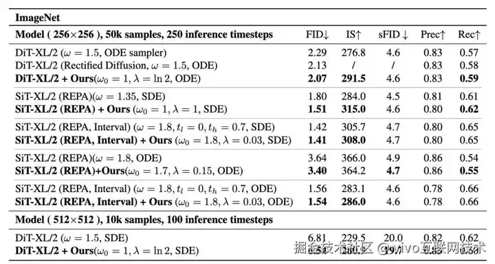 摘要: 针对扩散生成中长期使用的固定 CFG scale 机制存在不合理论的假设,该工作从 score 差异随扩散时间衰减的角度首次提出了 时间自适应的指数控制函数(C²FG)。这一 training-free、plug-and-play 引导策略在 DiT、SiT、Stable Diffusion 等多种框架上均稳定带来显著 FID 降低与 IS 提升,并可与 interval guidance/auto guidance 等方法正交叠加。实验证明,在 ImageNet 条件生成任务中,C²FG 在多个架构与采样器配置下达到了行业领先的生成质量。对应的论文已被 CVPR 接收!该工作由vivo BlueImage Lab,上海交通大学共同完成。