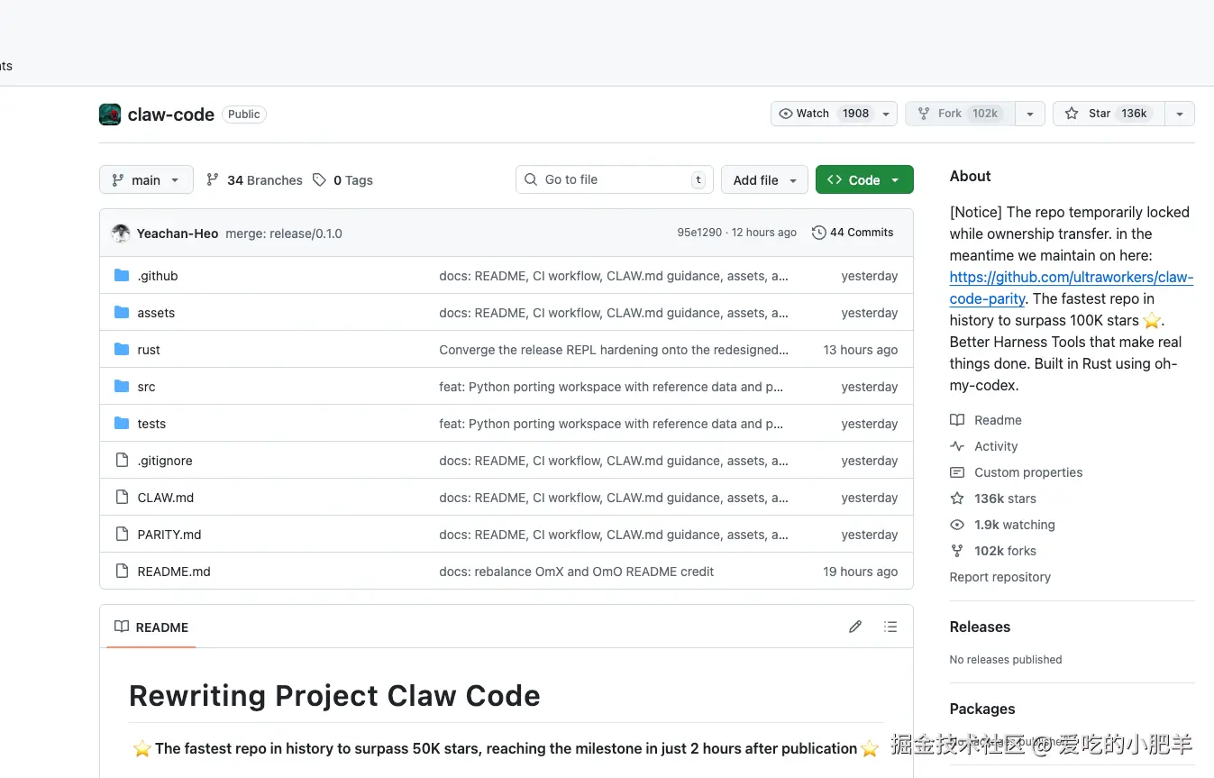 Claw Code 发布后 2 小时内 ,star 数突破 5 万,成为 GitHub 有史以来最快达到这一里程碑的仓库。
