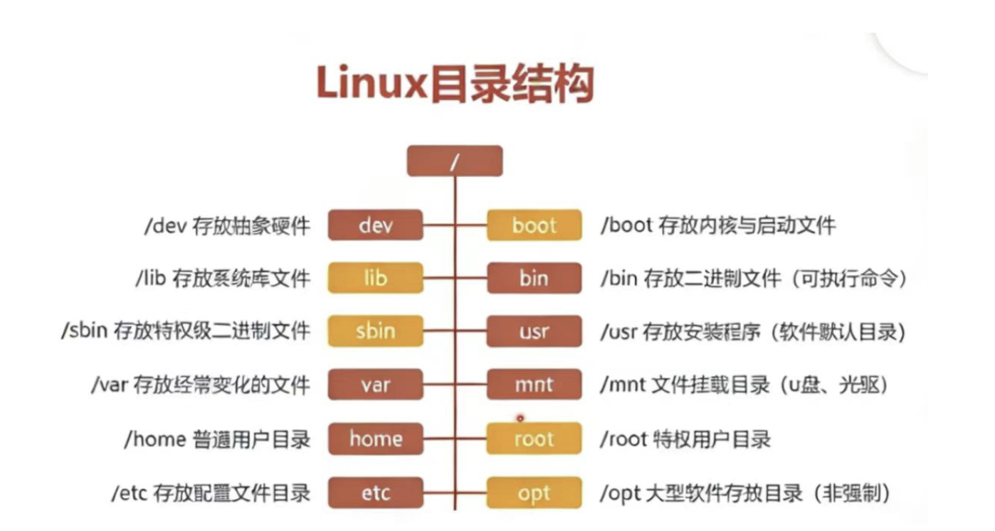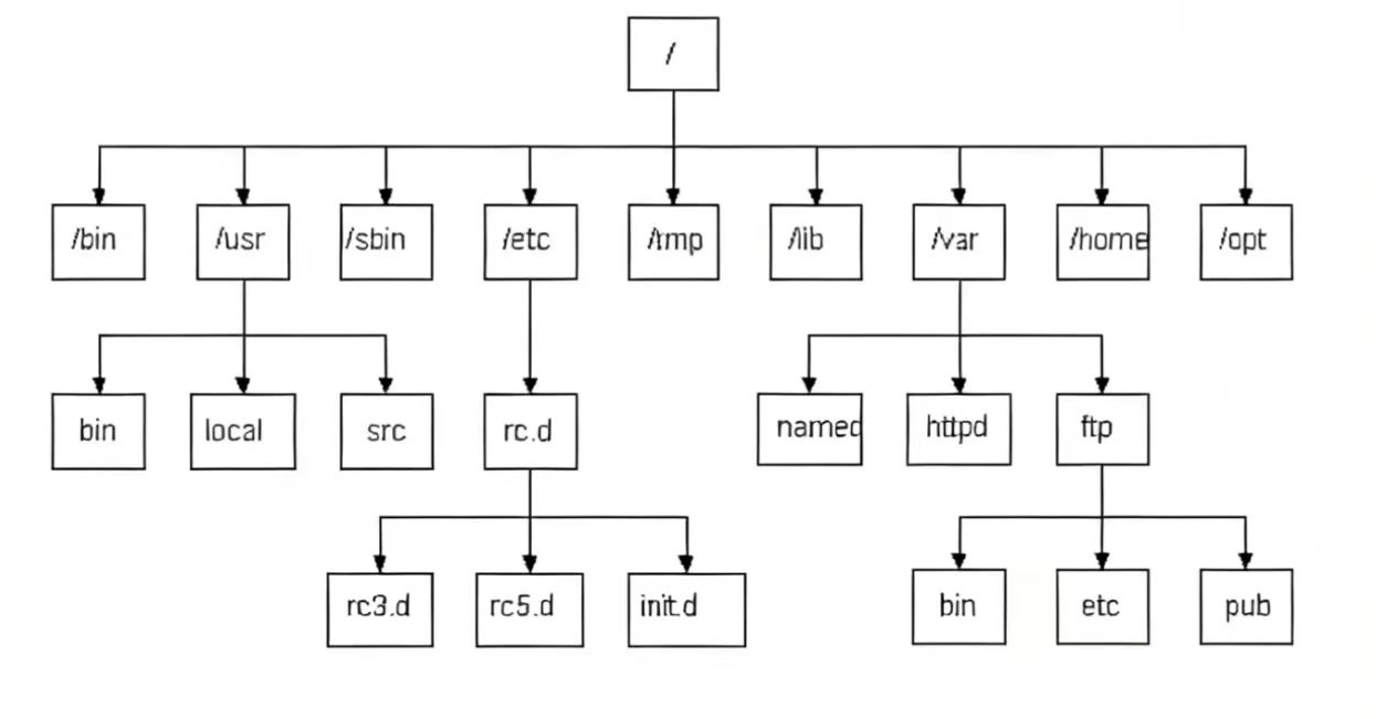 • Linux系统中,磁盘上的文件和目录被组成⼀棵目录树,每个节点都是目录或文件