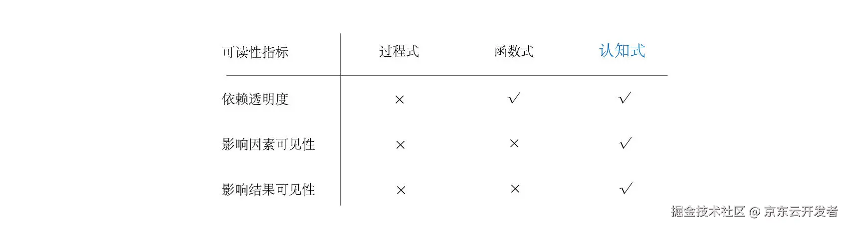 过程式service类中的方法,可以在方法执行的过程中随意读写数据源,故而影响返回值的因素并不全在入参里,属于不透明依赖。认知式以显示声明定义需要读取的数据,以及需要写入的数据。根本无法直接操作数据。函数返回值不受外界数据影响,依赖因素全在入参里,是透明依赖。