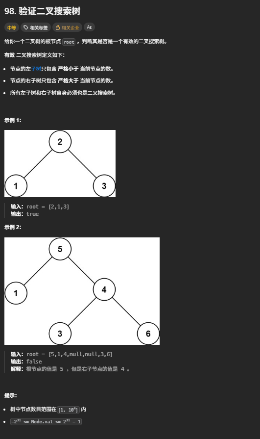 思路:给每个节点规定一个取值区间 (low, high),节点值必须在这个区间内才合法。